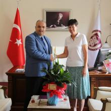 Rektörümüz Prof. Dr. Mehmet Barca, görevine yeni başlayan Prof. Dr. Ali Güneş’e de Yabancı Diller Fakültesi Dekanlığı görevinde başarılar diledi.